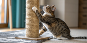 Choose the Right Scratching Post: Ensure the scratching post is tall enough for your cat to stretch fully. Posts that are covered in materials like sisal are ideal, as they are sturdy and provide a satisfying texture.